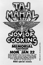 |  | Poster | TAJ MAHAL and JOY OF COOKING. 1973 | Memorial Auditorium , Stanford University | 1973 | RT0165 | |