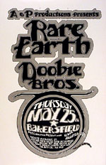 |  | Poster | RARE EARTH & DOOBIE BROTHERS. 1972 | Bakersfield Civic Auditorium | 1972 | RT0128 | |