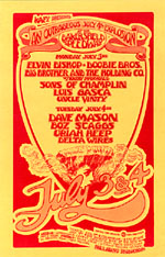 |  | Poster and Handbill | ELVIN BISHOP , DOOBIE BROS., BIG BROTHER and the HOLDING CO. with KATHY McDONALD, SONS OF CHAMPLIN , LUIS GASCA , DAVE MASON , BOZ SCAGGS, URIAH HEEP and DELTA WIRES. 1972 | Bakersfield Speedway | 1972 | RT0132 | |